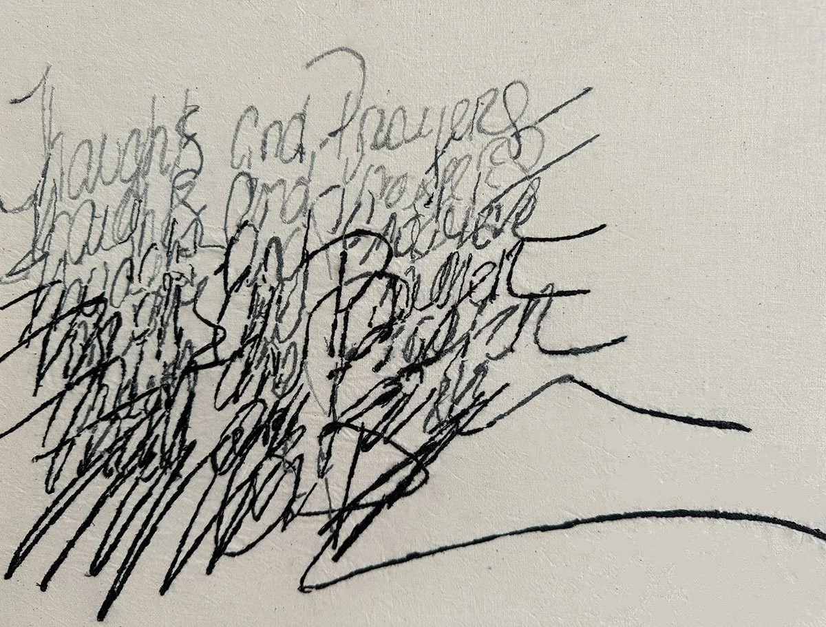 The year I became a classroom teacher was 1999, the same year as the Columbine school shooting in Colorado. Since that time there have been over 377 shootings in schools. These traumatic events have caused deep emotional and physical scars. Each of these slate chalkboard panels is laser cut with a phrase spoken by either a student, a teacher, or a 911 operator during a school shooting that occurred at one of the following schools: Sandy Hook Elementary School, Sandy Hook, Connecticut (2012) Marjory Stoneman Douglas High School, Parkland, Florida, (2018) and Robb Elementary School in Uvalde, Texas (2022). Each phrase is covered with chalk dust.